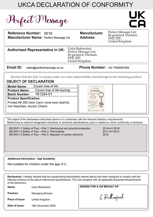 Cousin Tree Of Life keyring Inspirational Gift