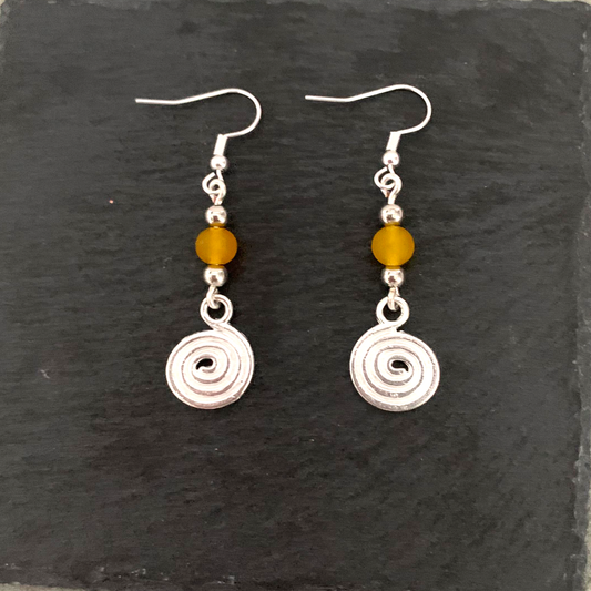 Golden Glaze Frosted Swirl Dangle Earrings