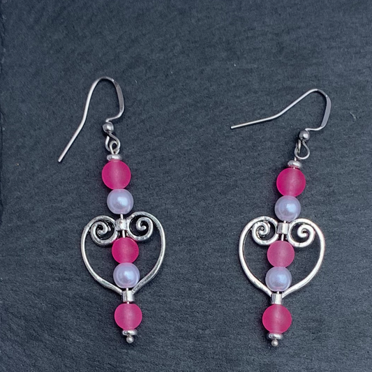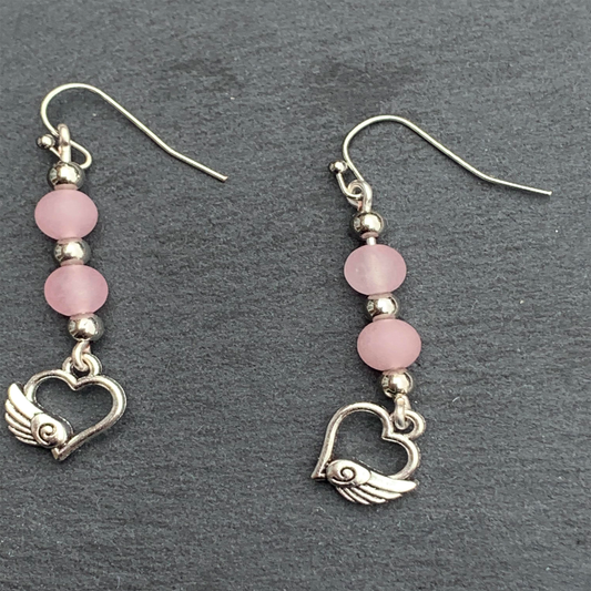 Frosted Pink Angel Heart Earrings