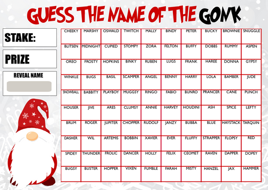 Guess the Name of Gonk Fundraising Game Christmas Fete Fayre A4