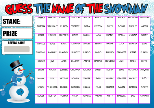 Guess the Name of Snowman Fundraising Game Christmas Fete Fayre A4