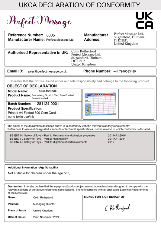 Predict the name of the football team Fundraising Scratch Card Game 100 Name Pub Game